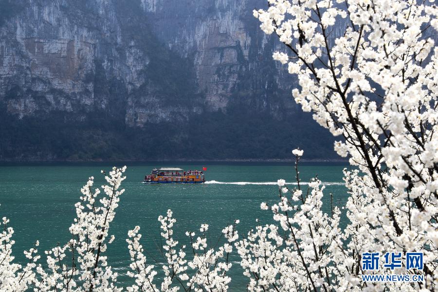 2月17日,在贵州省毕节市黔西县新仁苗族乡化屋村,游人乘船游览六冲河峡谷风光。新华社发(史开心 摄)