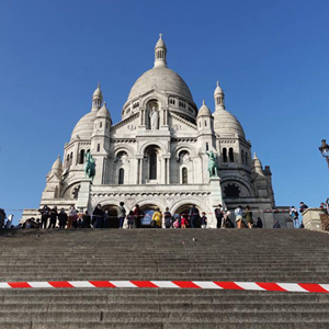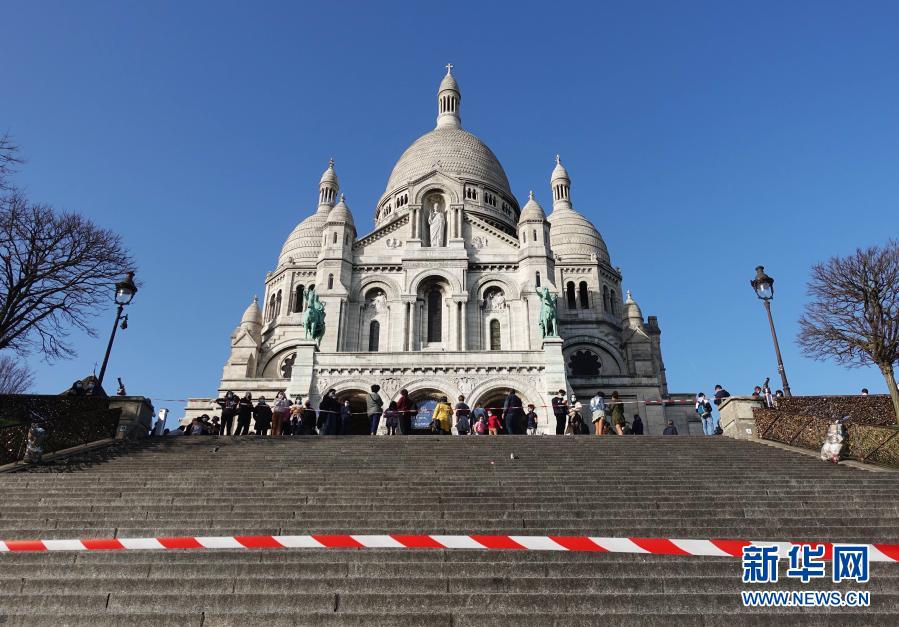 2月24日,警察封锁了法国巴黎蒙马特高地圣心教堂前的台阶以防止人群聚集。