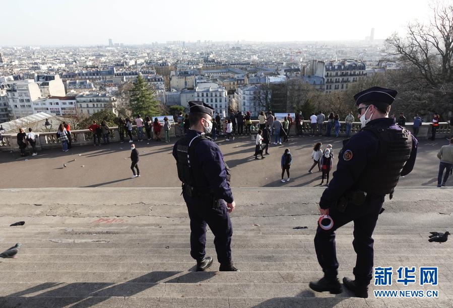 法国巴黎近日温度回升,当地民众纷纷走出家门享受明媚阳光。在一些人群聚集的地方,警察出动提醒人们遵守防疫措施,劝散聚集人群。