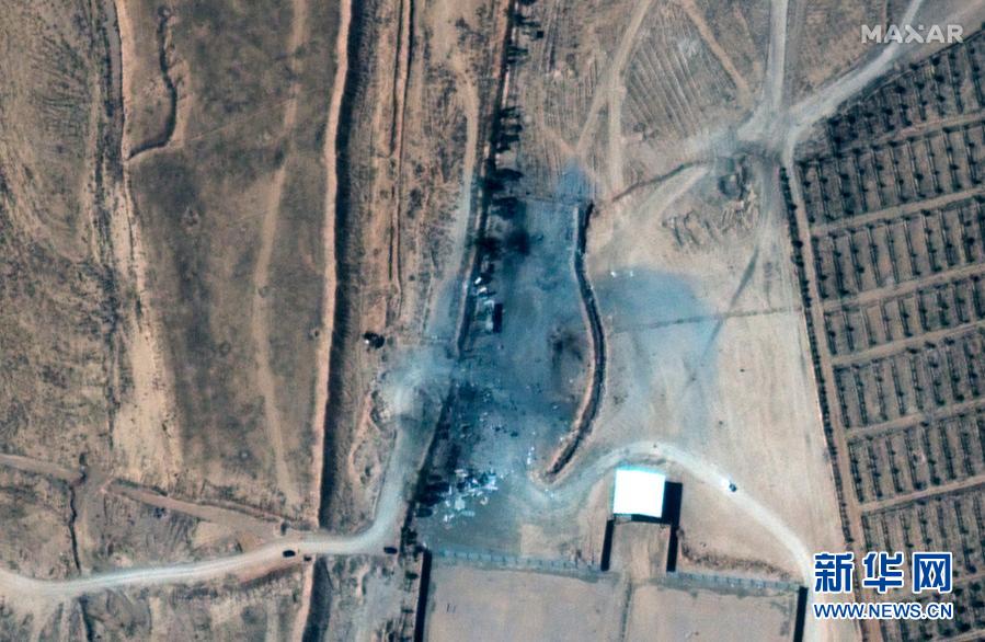 这张由美国马克萨尔科技公司提供的卫星图片显示的是叙利亚东部边境遭空袭后的区域。新华社/美联