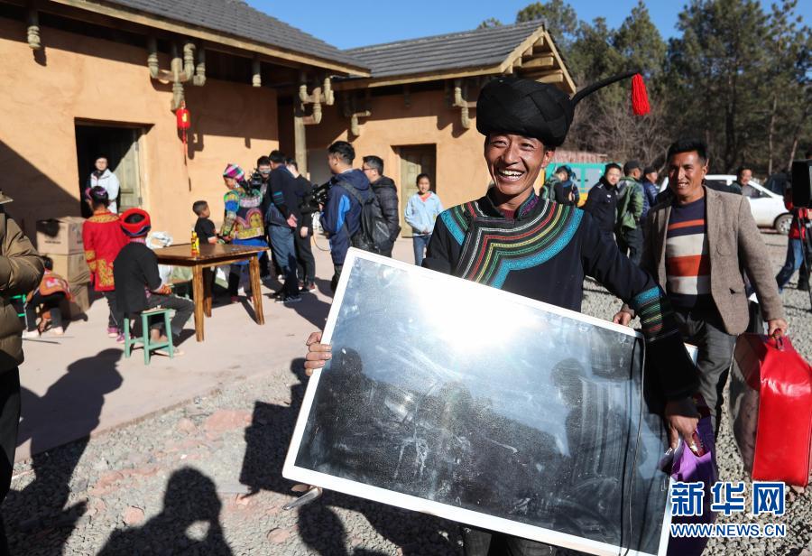 在四川省昭觉县三河村的易地扶贫安置点,彝族群众马海日聪喜搬新居(2019年2月11日摄)。新华社记者 江宏景 摄