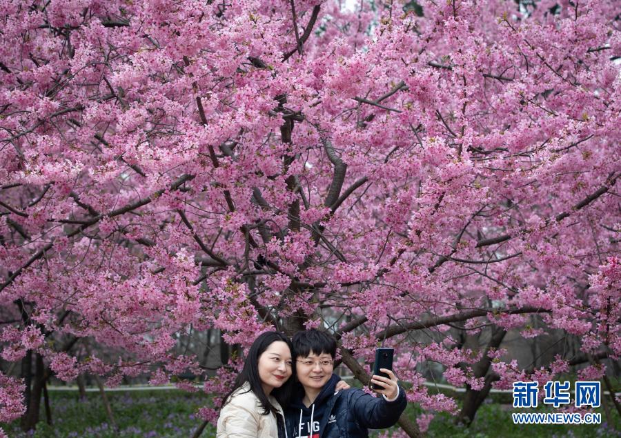 当日,武汉东湖樱花园开园,东湖樱花节同步举办。园内绽放的樱花和文艺表演吸引游客前来赏花观景,放松身心。