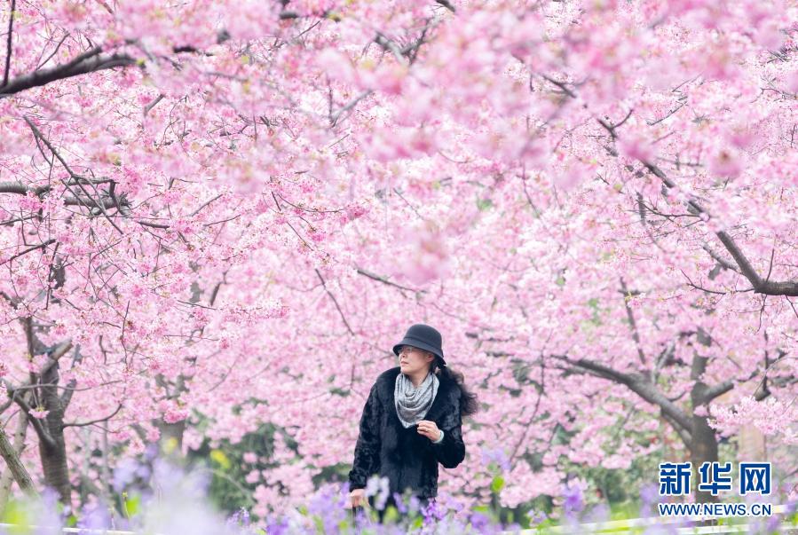 当日,武汉东湖樱花园开园,东湖樱花节同步举办。园内绽放的樱花和文艺表演吸引游客前来赏花观景,放松身心。