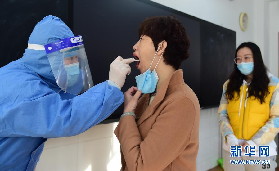 2月27日,河北省沧州市实验小学的教师在进行核酸采样。新华社发(傅新春 摄)