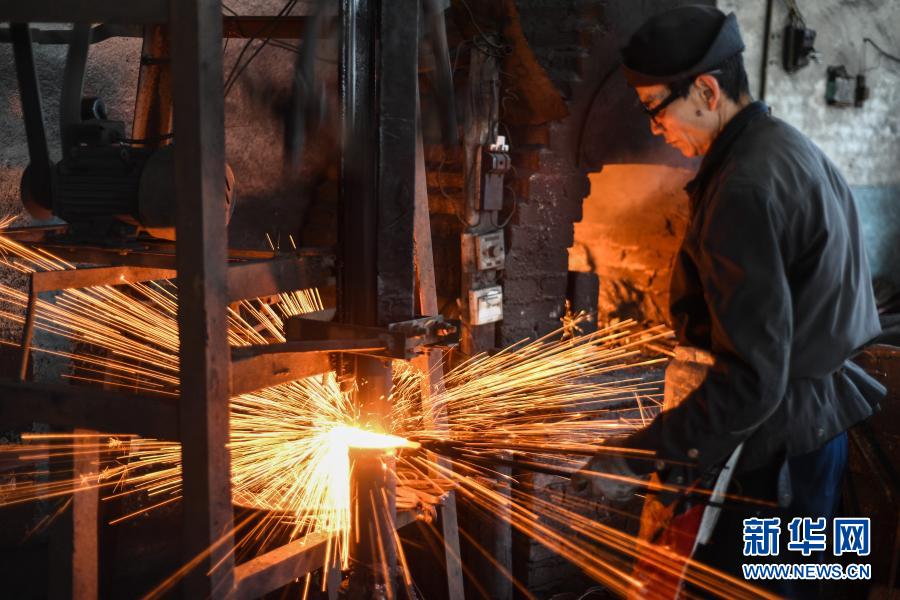 春耕时节,贵州省黔东南苗族侗族自治州凯里市湾水镇的铁匠们忙着制作镰刀、犁头等传统铁制农具,供大山深处的群众使用。