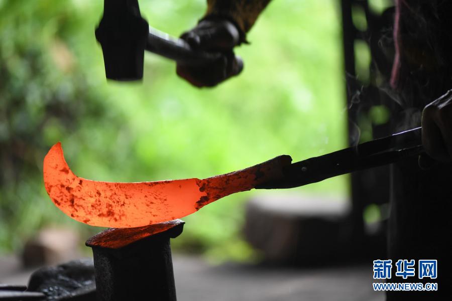 春耕时节,贵州省黔东南苗族侗族自治州凯里市湾水镇的铁匠们忙着制作镰刀、犁头等传统铁制农具,供大山深处的群众使用。