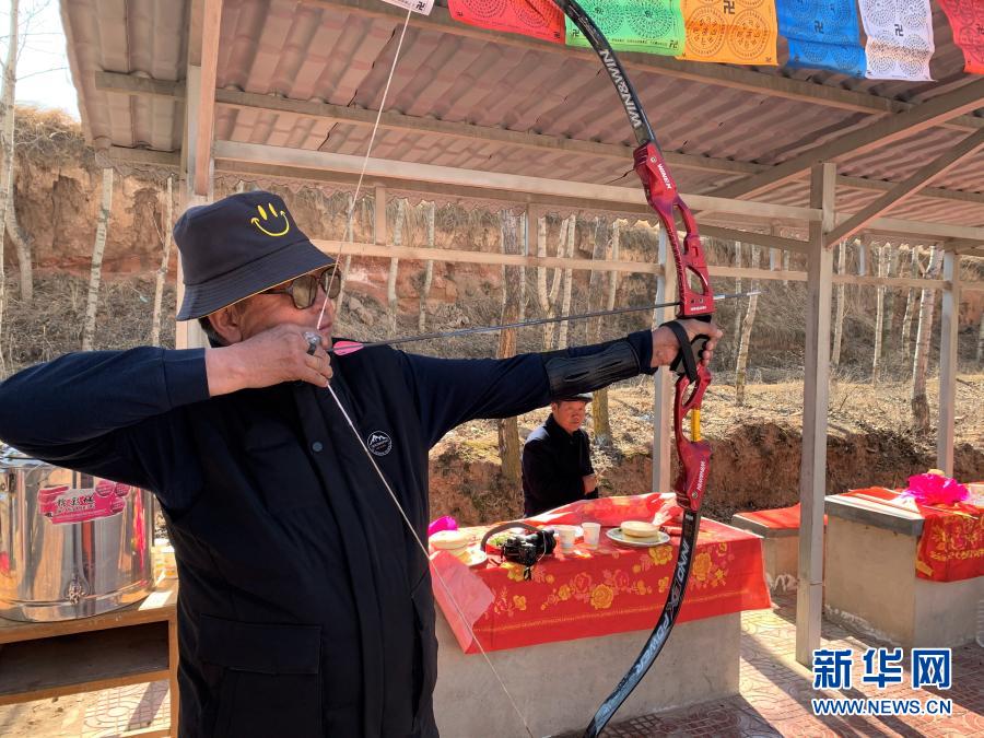2月23日,祁玉德在木场村射箭场射箭。新华社记者 解统强 摄
