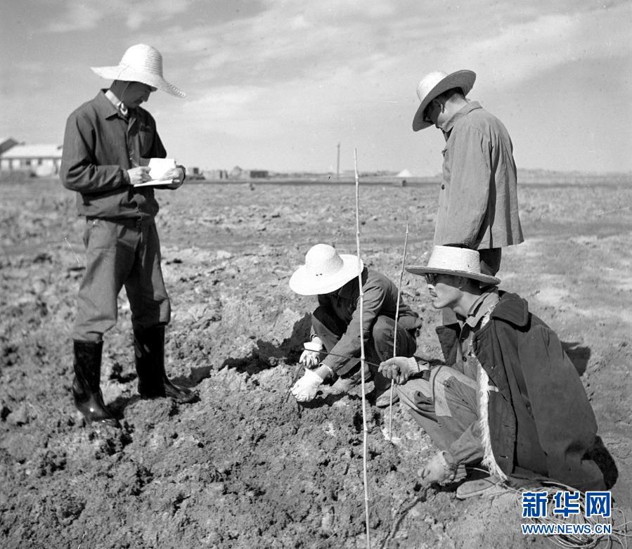 图为1978年科研人员在柴达木盆地察尔汗盐湖测量溶洞(资料照片)。新华社发