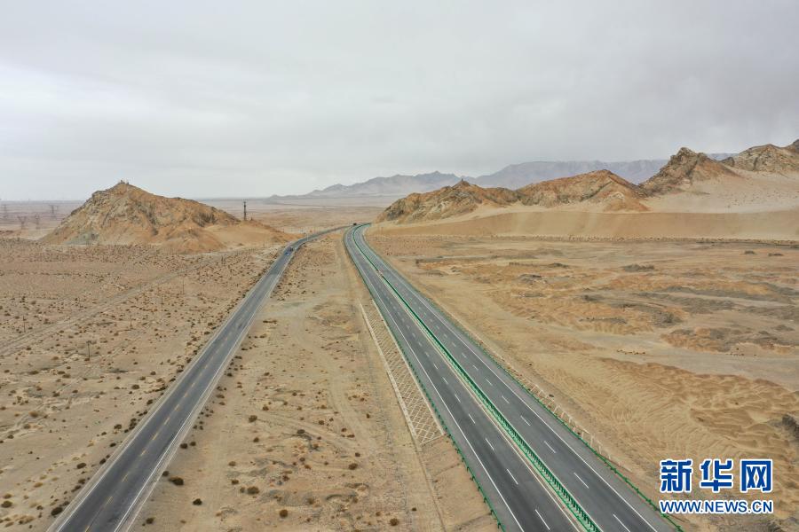 穿越柴达木盆地的国道G109线(2月25日摄,无人机照片)。新华社记者 王艳 摄