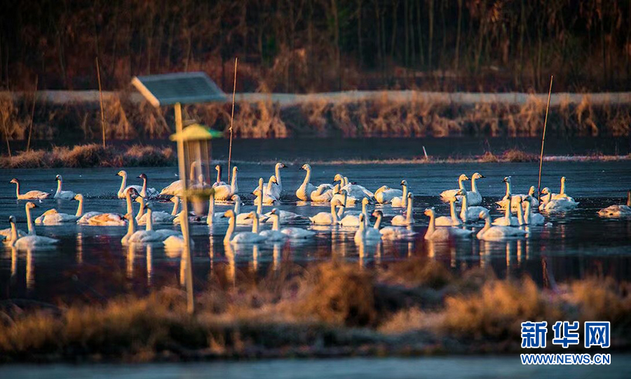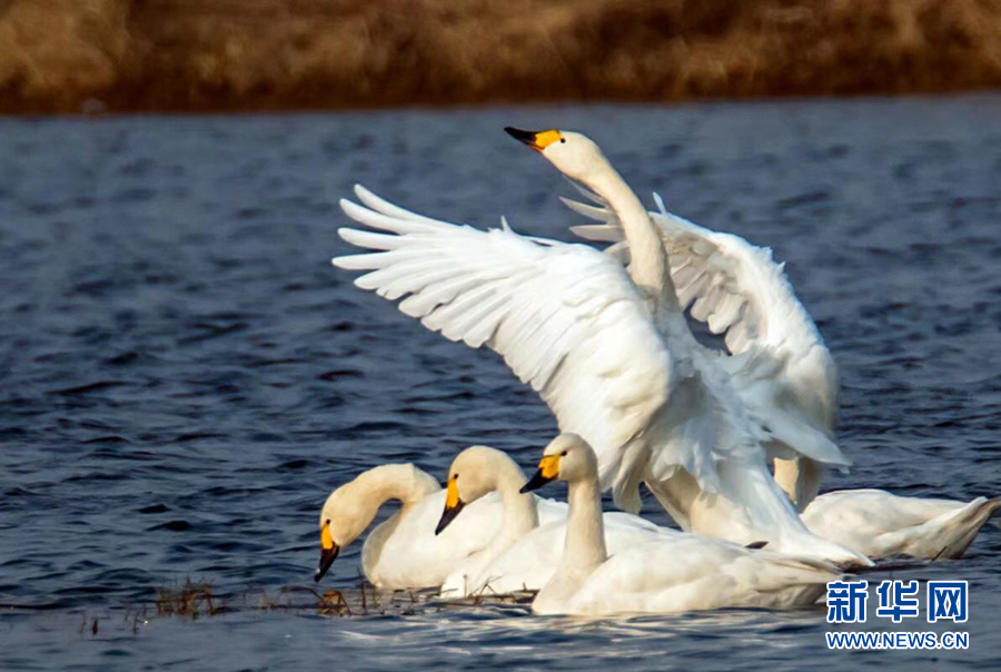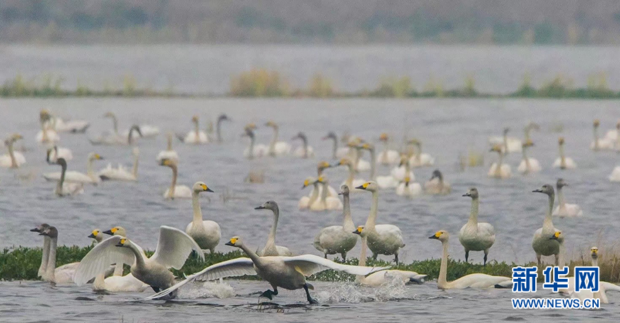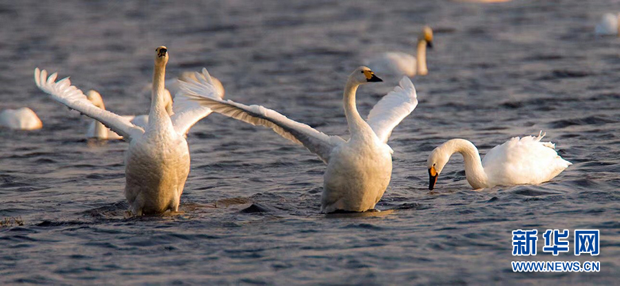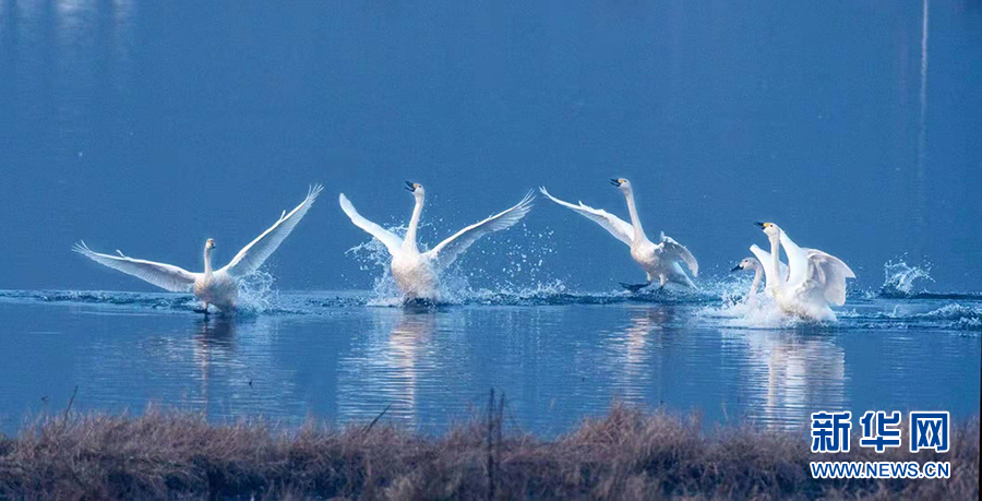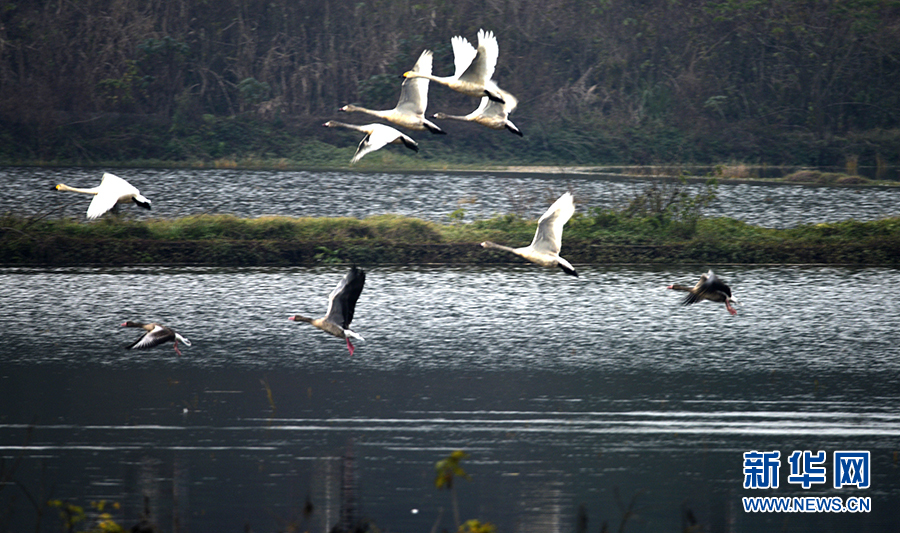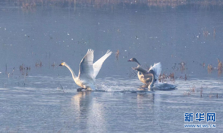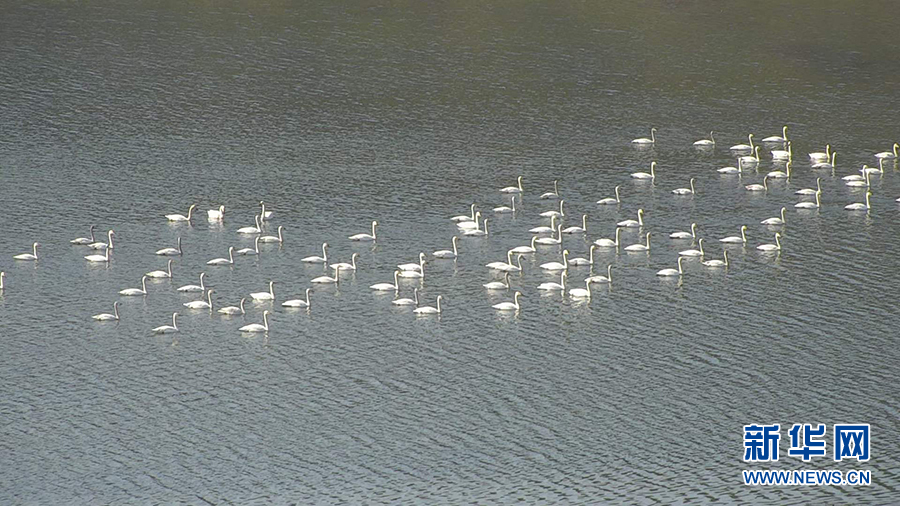 每年的10月到次年3月,有近万只白天鹅飞到一秀天鹅湖栖息越冬。新华网发 武穴一秀农庄供图