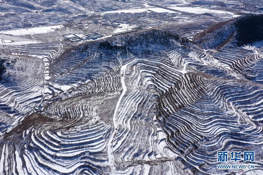 3月1日在河北省唐山市迁西县新庄子乡新庄子村拍摄的雪景(无人机照片) 。新华社发(王爱军 摄)