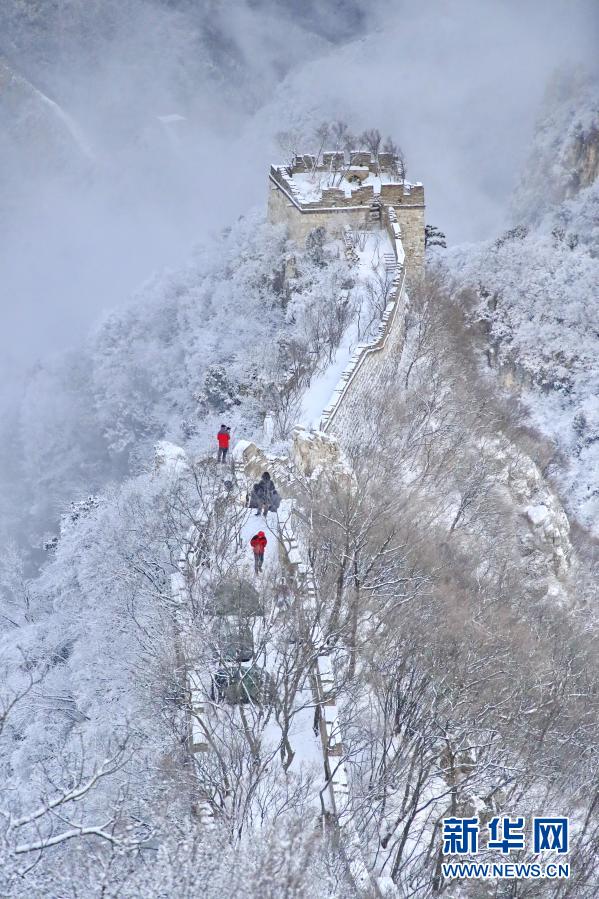 3月1日在北京市怀柔区拍摄的雪后箭扣长城美景。新华社发(刘宪国 摄)