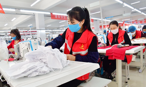 2020年以来,该厂生产民用口罩90万副,一次性口罩30万副,防护服12万套,学生校服、工作服等35万套,营业额3700余万元。疫情期间,市卫健部门调拨该厂口罩12万副,该厂还为学校复学捐赠口罩10万副。2020年随着产品质量的提升和价格的调整,职工月平均工资达3500元,人均月增收500元左右。该厂业务遍及我省11个地市,产品订单辐射河北、山东、陕西、内蒙等周边省份。