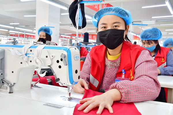 创条件拓展增收渠道,帮姐妹就地就近就业。久冠服装厂因势利导,在移民小区组建扶贫车间,吸收小区及周边闲散妇女300余人就近就业,带领贫困妇女脱贫致富奔小康。为帮助贫困妇女把生产的服装通过各种渠道销售出去,久冠服装厂主动与300多家大中专院校及重点中学建立了长期合作关系,并在河北、山东、浙江、广东等地有面料辅料供应商50多家。目前,业务遍及我省11个地市,产品订单已辐射河北、山东、陕西、内蒙等周边省份,帮助贫困妇女人均月增收3000元以上。下一步,服装厂还计划利用当地丰富的劳动力资源,培训本土农民工,为当地的百姓造福。