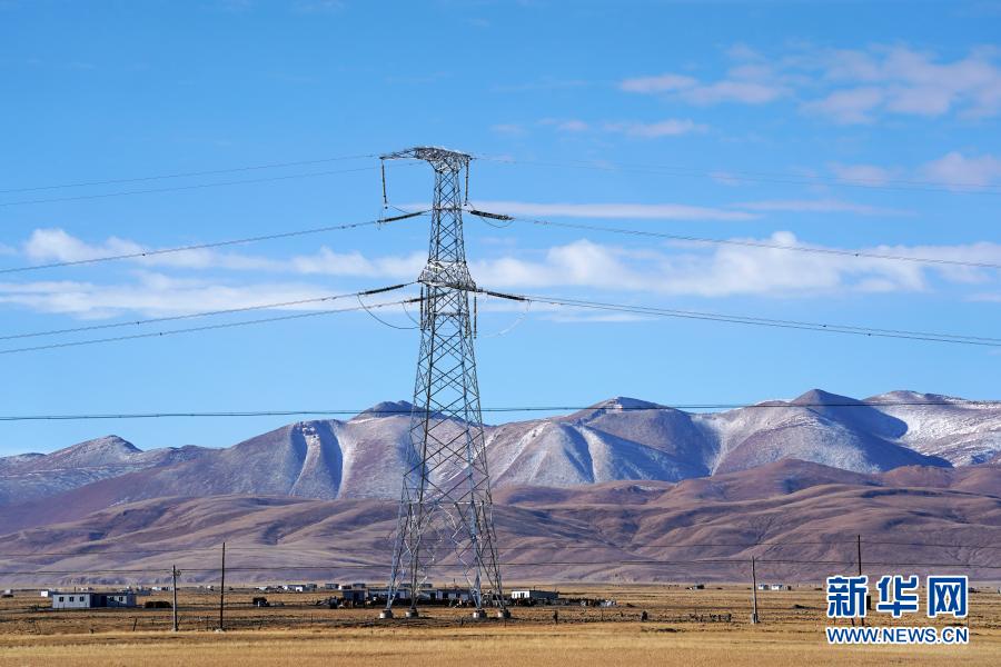 这是2020年11月29日在西藏阿里地区普兰县拍摄的西藏阿里与藏中电网联网工程输电铁塔。新华社记者 詹彦 摄