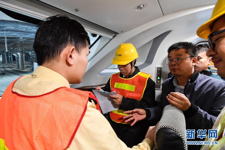3月3日,参加热滑试验的技术人员在出发前,向广州地铁18号线时速160公里电客车驾驶员(左一)交待驾驶注意要点。