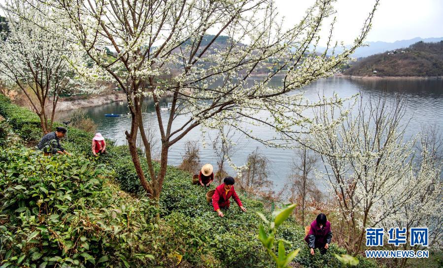 3月4日,安康市汉滨区流水镇群众在汉江之滨采摘新茶。