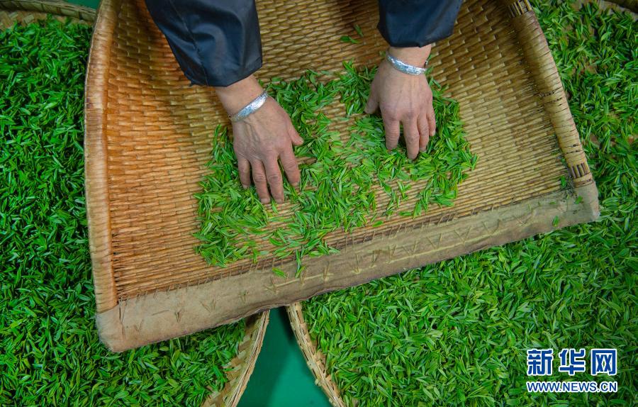 3月4日,安康市汉滨区流水镇刚子茶叶专业合作社的社员在筛选采摘的新茶。新华社记者 陶明 摄