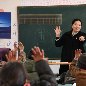 在四川省美姑县瓦以村,杨卓玛在自学彝语(3月2日摄)。新华社记者 王曦 摄