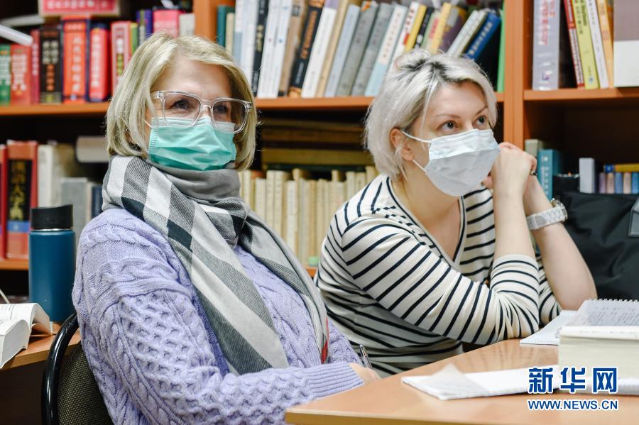 俄罗斯国立人文大学孔子学院近日正式开学,学生们戴上口罩重返课堂,开始新学期的学习。新华社发(叶甫盖尼·西尼岑摄)