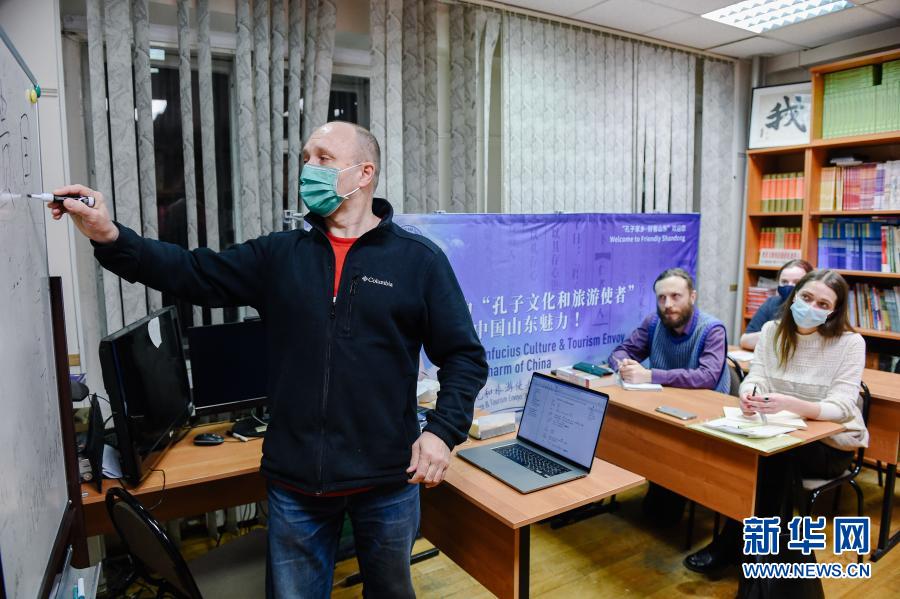 3月4日,教师在位于莫斯科的俄罗斯国立人文大学孔子学院为学生授课。