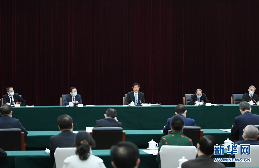 3月6日,中共中央政治局常委、全国人大常委会委员长栗战书看望出席全国政协十三届四次会议的致公党、侨联、对外友好界委员并参加讨论。新华社记者 申宏 摄