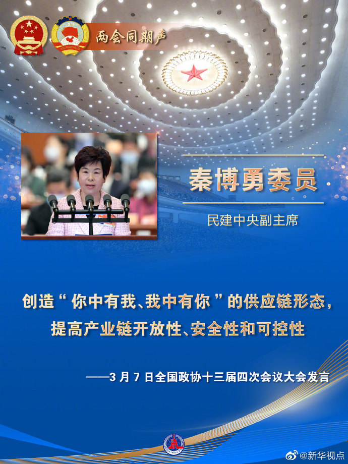 7日上午,全国政协十三届四次会议在人民大会堂举行第二次全体会议。12名委员作大会发言。秦博勇委员代表民建中央发言。