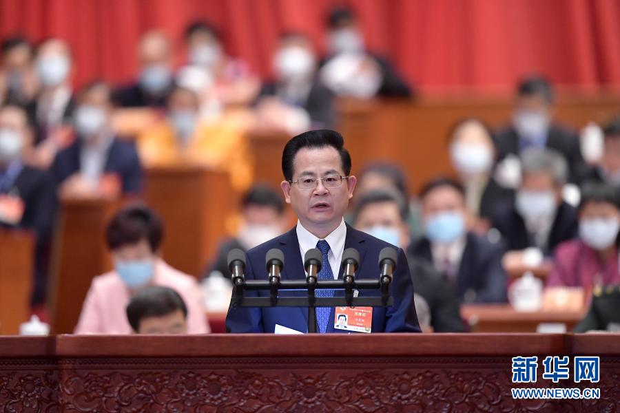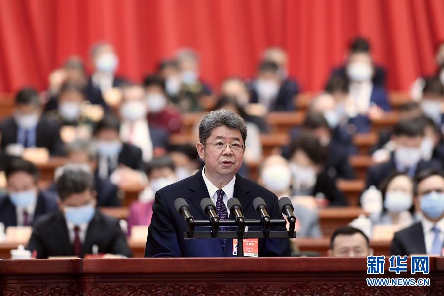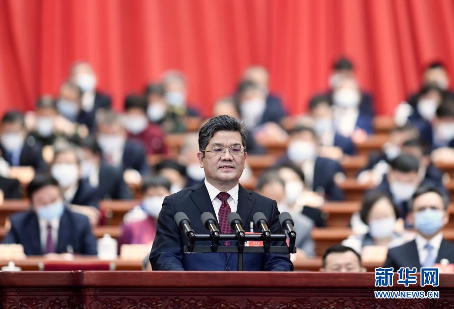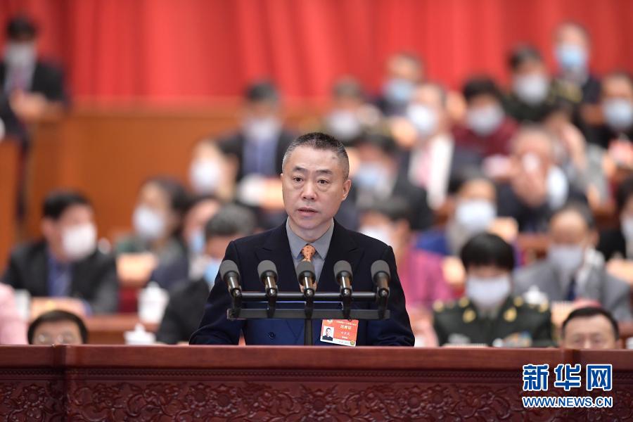 3月7日,全国政协十三届四次会议在北京人民大会堂举行第二次全体会议。这是刘家强委员代表民革中央作大会发言。新华社记者 李贺 摄