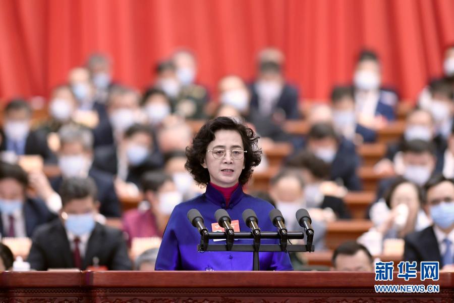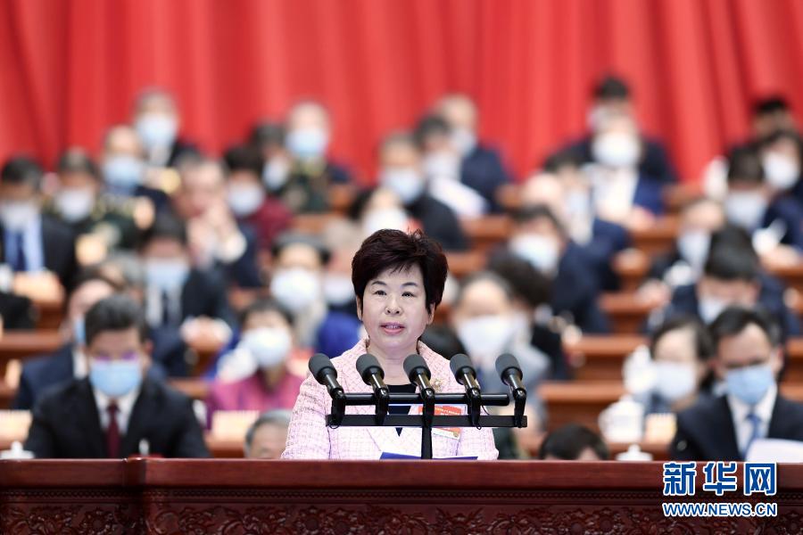3月7日,全国政协十三届四次会议在北京人民大会堂举行第二次全体会议。这是韦震玲委员作大会发言。新华社记者 丁海涛 摄
