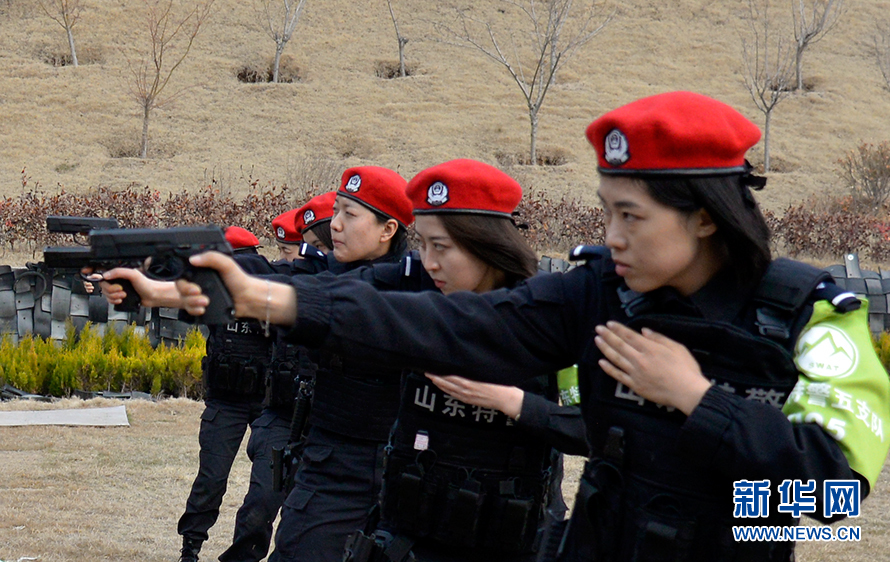 3月5日,女特警队员正在进行女子手枪基础动作射击训练。新华网发(庞黎黎 摄)