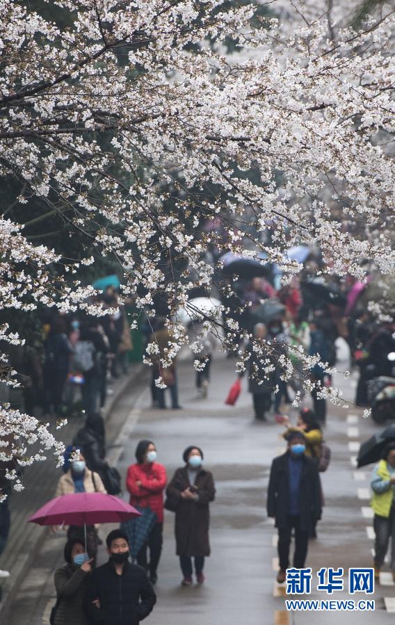 3月8日,游客在武汉大学赏花。新华社记者肖艺九摄