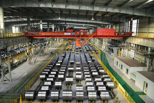 总投资80多亿元,包钢年产353万吨高端稀土钢板材冷轧工程全面投产,2016年12月8日,工人在包钢稀土钢板材冷轧生产线上吊卸产品。新华社记者 邓华 摄