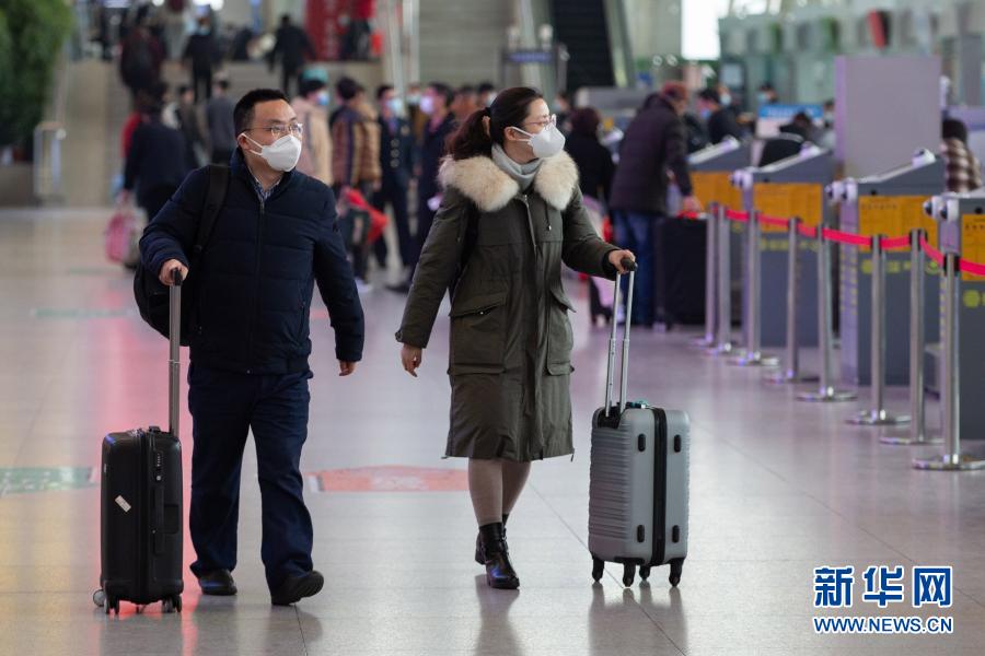 3月8日,旅客在南京火车站候车厅准备乘车。新华社发(苏阳 摄)