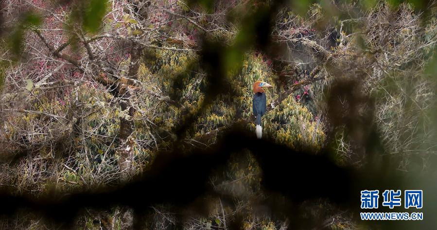 这是3月7日在云南盈江县境内拍摄到的棕颈犀鸟。新华社发(尹以祜摄)
