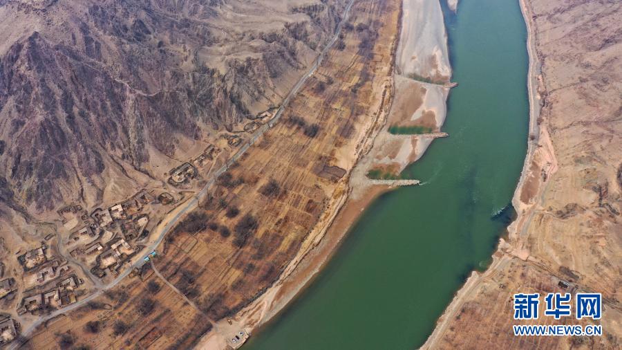 黄河流经宁夏中卫市北长滩村(2月25日摄,无人机照片)。新华社记者 王鹏 摄
