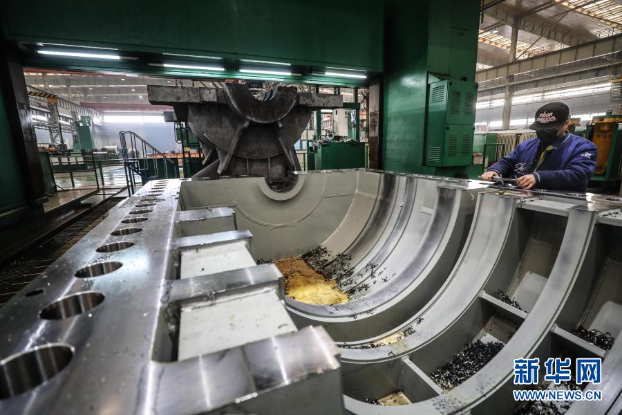 沈阳鼓风机集团股份有限公司的工人在车间进行生产工作(2020年2月10日摄)。新华社记者 潘昱龙 摄