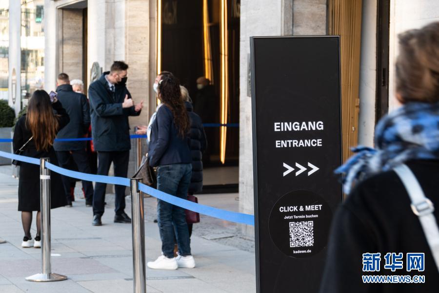 3月9日,人们在德国首都柏林排队等候进入一家商店。