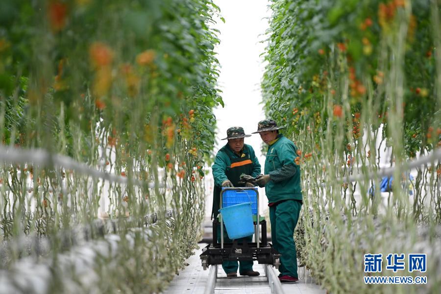 工人在甘肃兰州新区现代农业示范园内采摘(2020年12月8日摄)。近年来,兰州新区通过无土栽培、自动化智能管控、粪肥无害化处理加工等科技手段,形成了“种养加、产供销”一体,具备生态观光、田园综合体、农业博览园等众多功能的现代循环农业体系。新华社记者 陈斌 摄