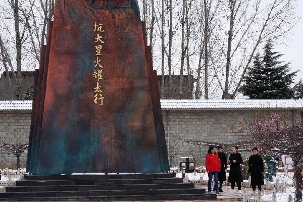 3月6日,在中国人民抗日军政大学陈列馆的抗大梅园,杨树和讲解员策划“抗大梅”系列活动。新华社记者 任丽颖 摄