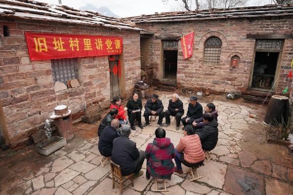 3月6日,在河北邢台信都区浆水镇安庄村抗大卫生处旧址,杨树和村民一起讨论发展红色旅游的措施。新华社记者 范世辉 摄