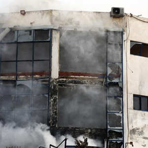 3月11日,在埃及盖卢比尤省,失火的制衣厂内冒出浓烟。新华社发(艾哈迈德·戈马摄)