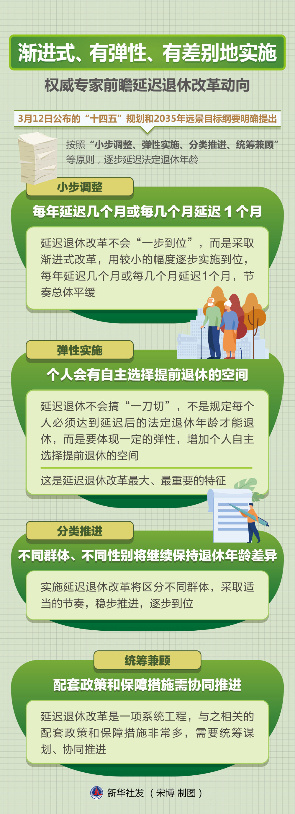 新华社北京3月13日电 题:渐进式、有弹性、有差别地实施——权威专家前瞻延迟退休改革动向