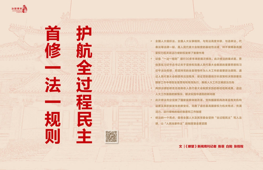 ◆ 修法的一个亮点,是将全国人大及其常委会坚持“全过程民主”写入法律,让“人民当家作主”的制度堡垒更坚固