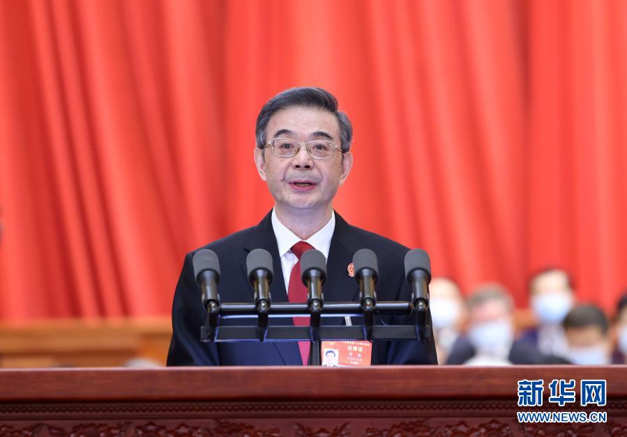 3月8日,十三届全国人大四次会议在北京人民大会堂举行第二次全体会议。最高人民法院院长周强代表最高人民法院作工作报告。新华社记者 刘彬 摄