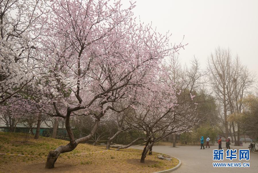 3月15日,人们在北京玉渊潭公园晨练。当日,我国北方多地出现沙尘天气。新华社记者 陈晔华 摄