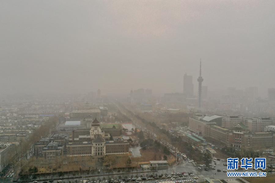 这是3月15日拍摄的沙尘笼罩的吉林省长春市(无人机照片)。当日,我国北方多地出现沙尘天气。新华社记者 张楠 摄