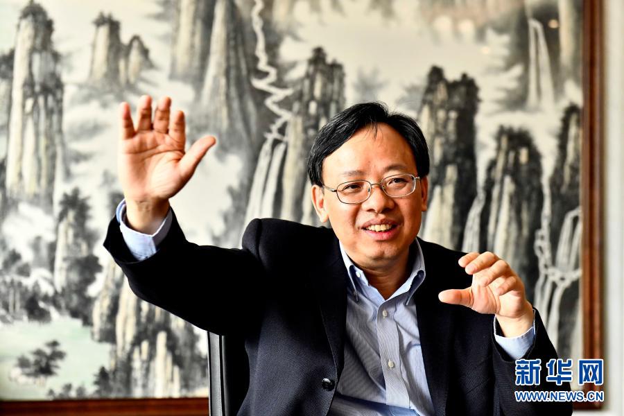 万华化学集团党委书记、董事长廖增太在介绍企业发展情况(2月25日摄)。新华社记者 郭绪雷 摄