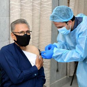 3月15日,巴基斯坦总统阿尔维在伊斯兰堡接种新冠疫苗。新华社发(巴基斯坦媒体信息部供图)