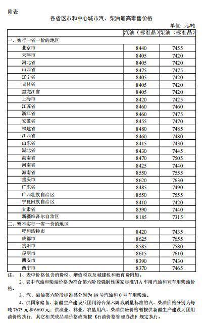 附:各省区市和中心城市汽、柴油最高零售价格