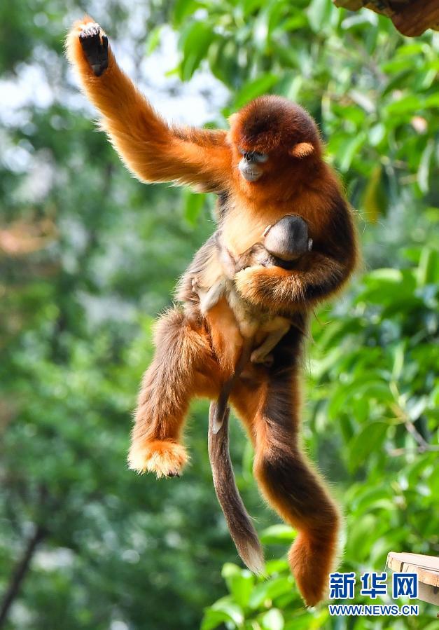 广州长隆川金丝猴幼崽满月亮相